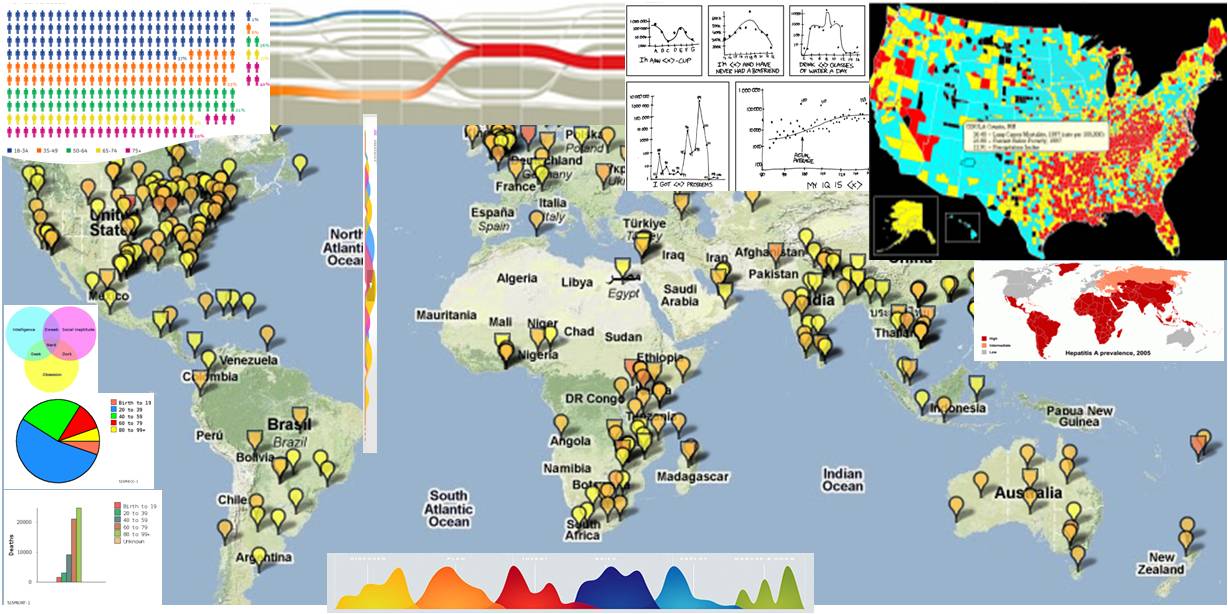 wledge from health data. Remember who invented the pie chart? That's right, it was Florence Nightingale, a nurse who needed a way to better represent her data. one of the most famous examples of visualizing epidemiological data was Dr. John Snow's map of deaths from a cholera outbreak in London, Many other techniques and software tools exist, but maps remain popular - especially google maps API. One of popular tools for epidemiological data is Google Maps API. For example, it embeds Google Maps into healthmap.org with JavaScript.